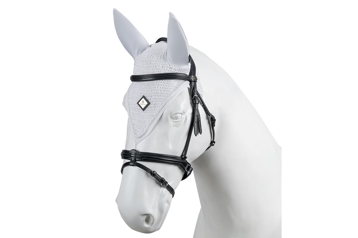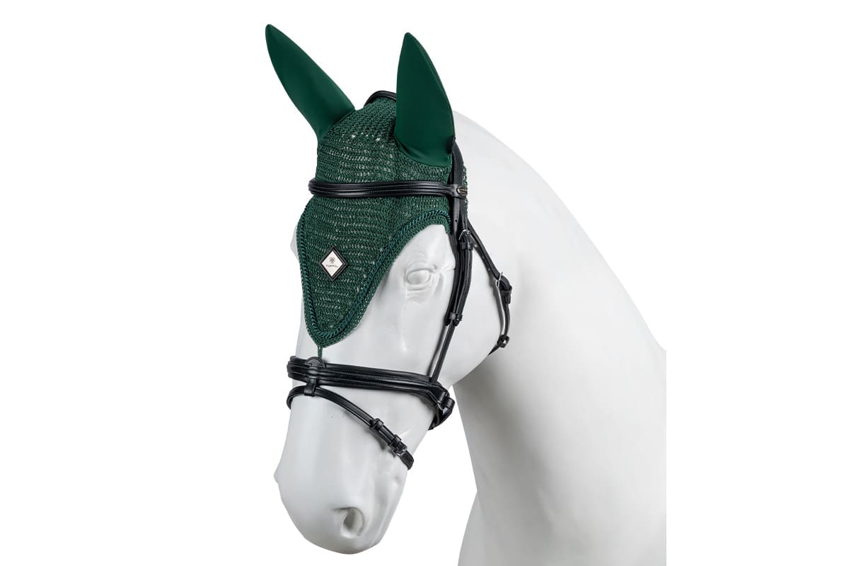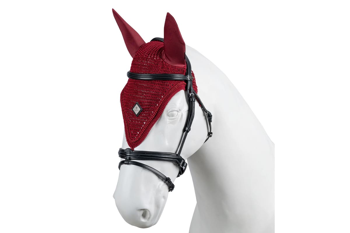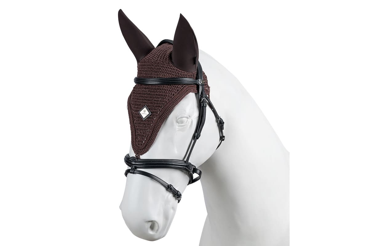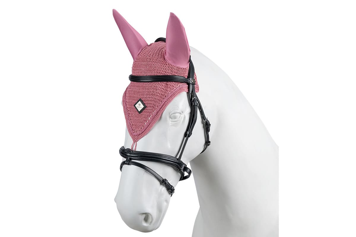 Handmade from fine cotton yarn, finished with decorative stitching. Protect against insects and muffle sounds while riding. Feature a distinctive shape and a loop that allows connecting to the noseband. Decorated with a cord in the product’s color.