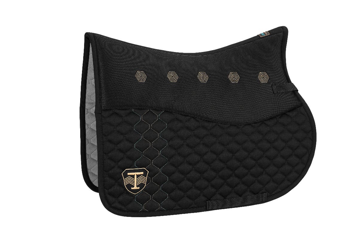 Made of quilted denim with distinctive contrast stitching. It is lined with Evolon® a fabric with exceptional absorbent, breathable and drying properties. Reinforced in the upper part with an additional layer of non-woven fabric protected by 3D mesh, which provides excellent air circulation and protection against pressure and bruises. The tried-and-tested, anatomical cut guarantees a perfect fit to the horse’s back.