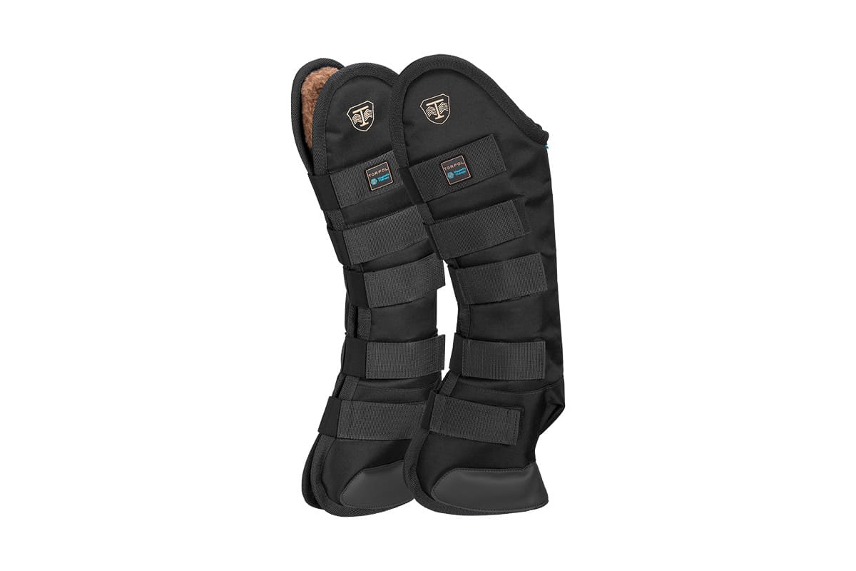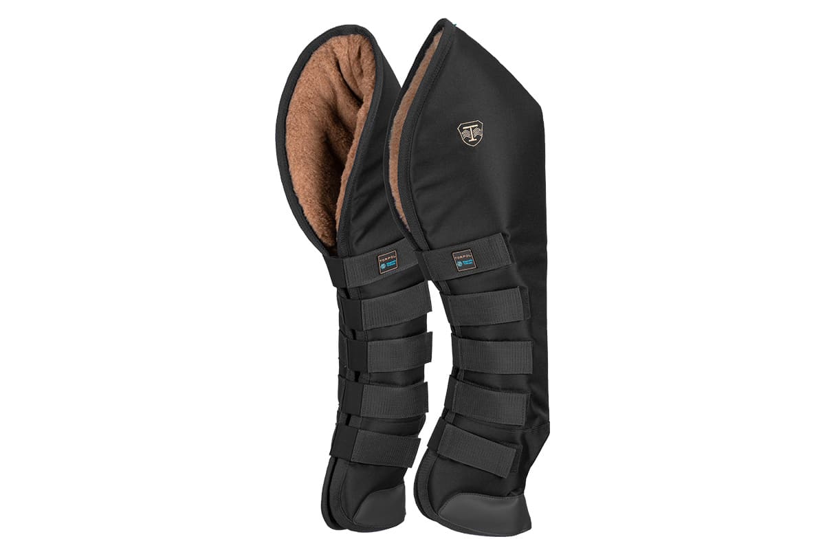 Made of nylon, filled with a layer of non-woven fabric, lined with wool knitwear. Reinforced with eco-leather in the hoof area. Fasteners in the form of strong Velcro keep the protectors in the right position. A novelty are the fasteners enriched with elements made of strong rubber, thanks to which they can be adjusted even better.