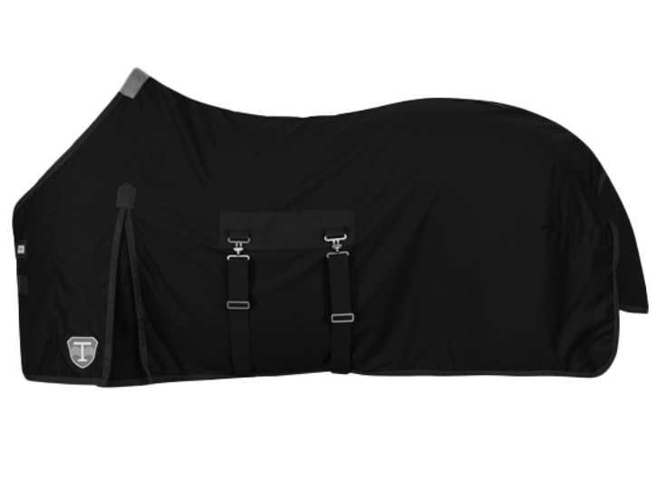 Breathable, single-layer stable rug, perfect between seasons. Protects against a slight chill. It has slits on the shoulder blades to allow freedom of movement. The fastening system under the belly prevents it from shifting. Made of damage-resistant material.