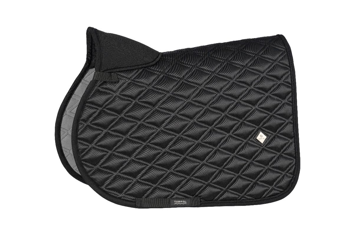 Particularly recommended for horses with high withers. Made of one piece of quilted B-NEV material. Free Neck system on the withers, gives the saddlepad perfect shape and ensures excellent air flow. Has unrivaled thermoregulatory properties. The inner part made of Evolon® fabric allows the saddlepad to absorb sweat, and makes it breathable and drying. It does not retain hair which makes it easy to maintain. Finished with piping and decorated with cord in the color of the product.