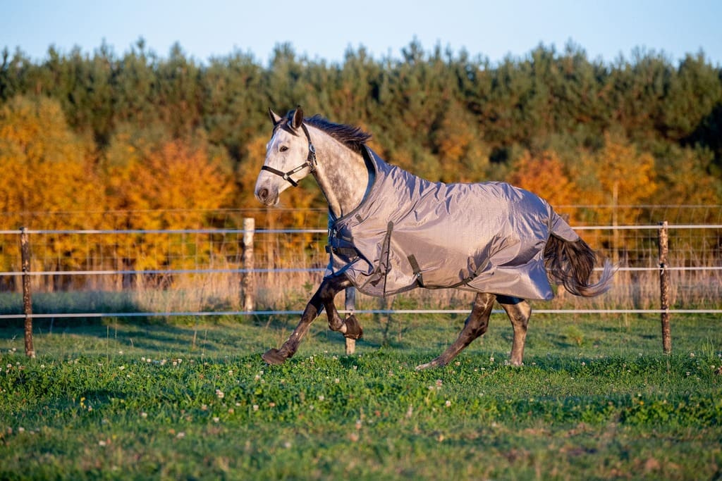 It will be perfect for the paddock, both in the autumn and spring seasons. Equipped with a system of adjustable fasteners under the belly, legs, and tail, which allow to properly fit the rug to the horse and keep it in place. Fastened with Velcro and two adjustable buckles in front.