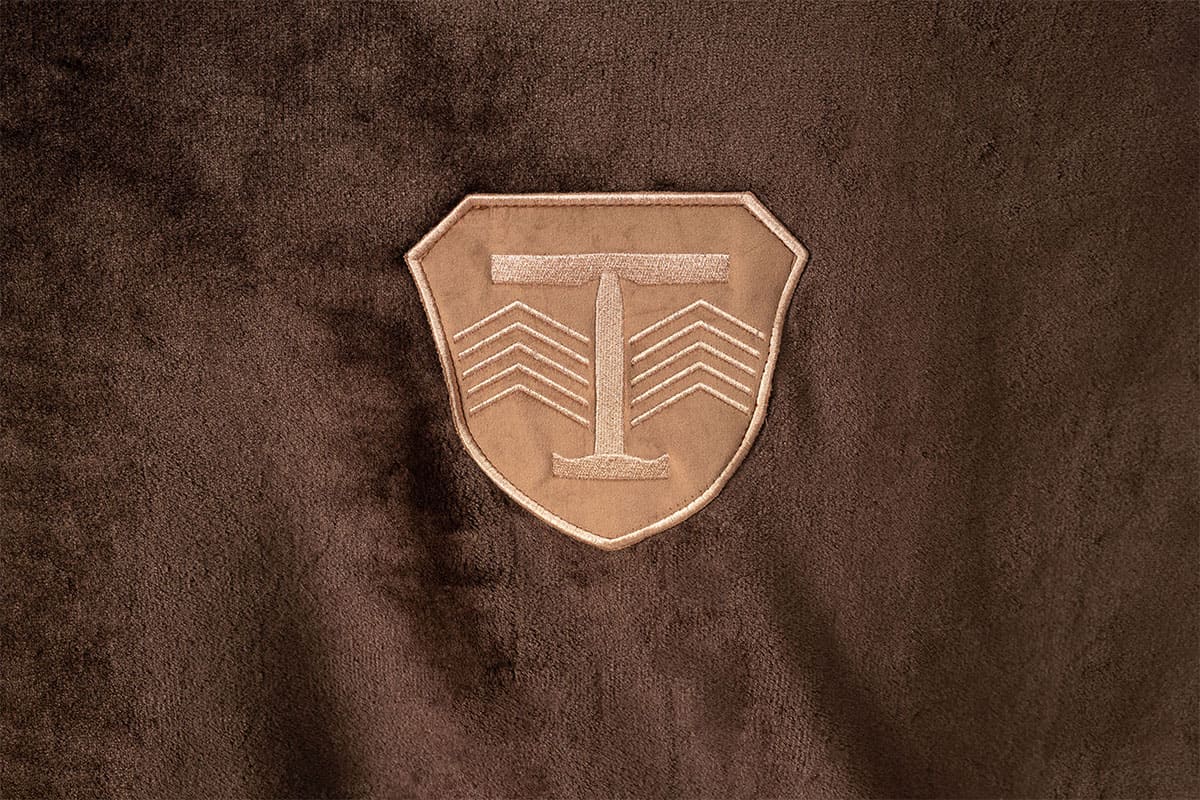 The rug is decorated with velvet patches with golden embroidery, matching the Royal 2.0 collection style. The perfect shape makes it lay perfectly on the back. The turn-up collar protects the neck from the cold. The rug has a single adjustable fastener and a strap for the tail.