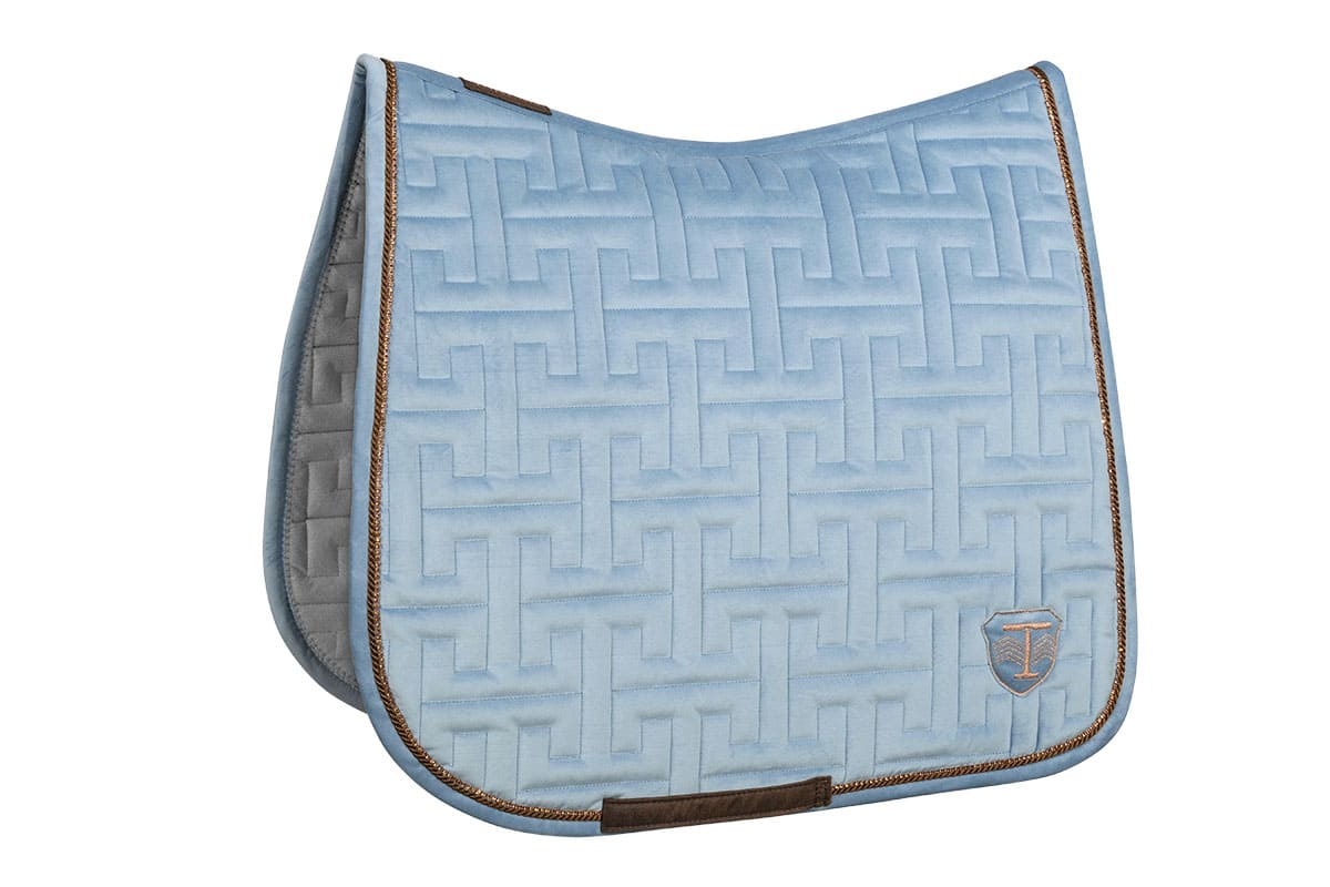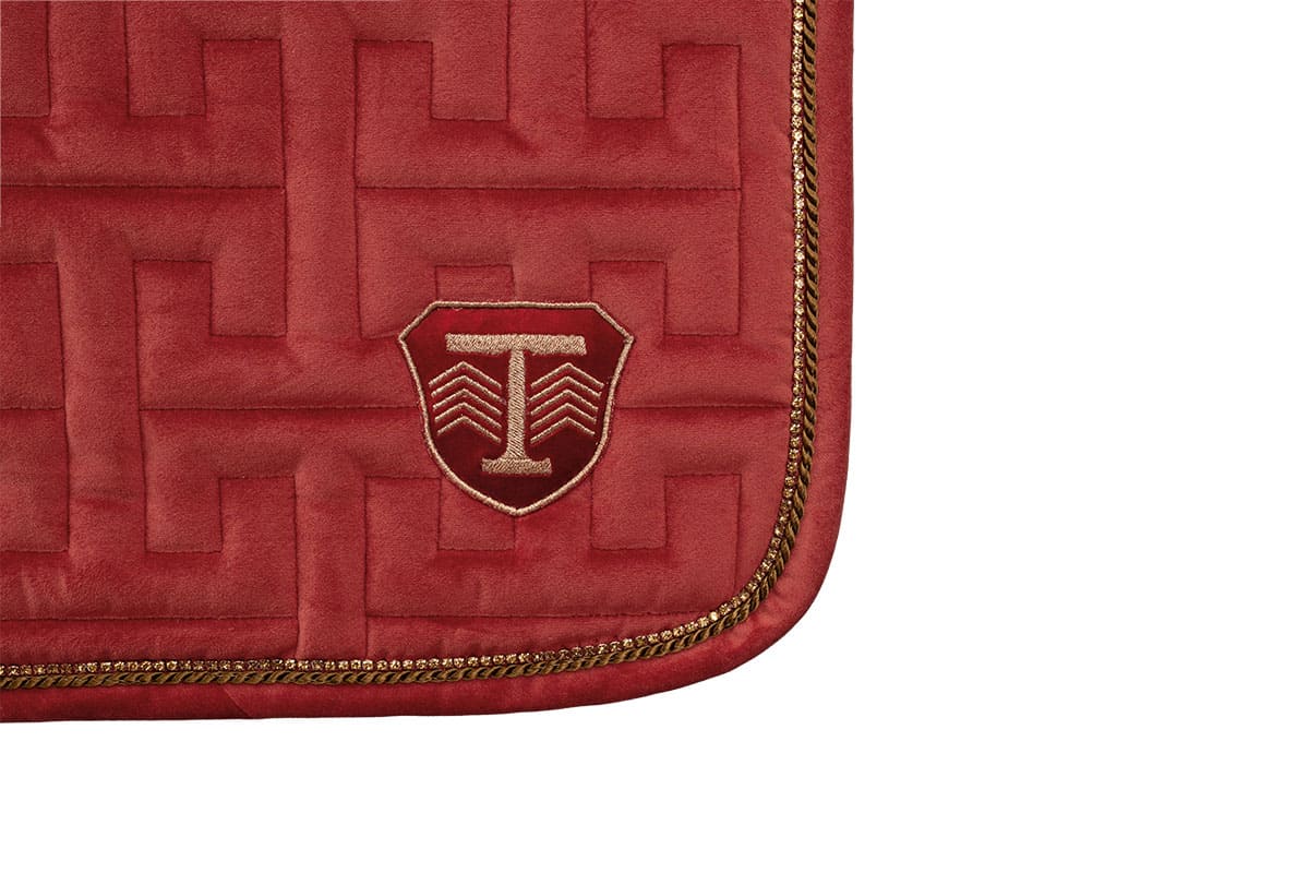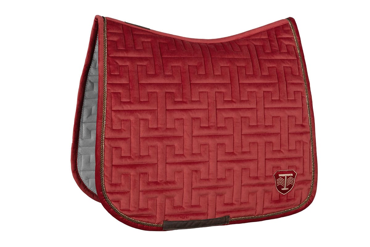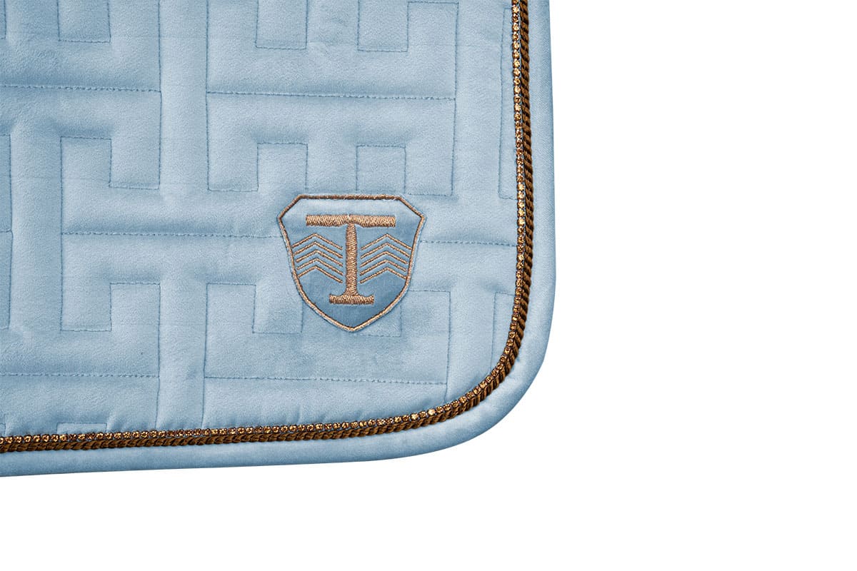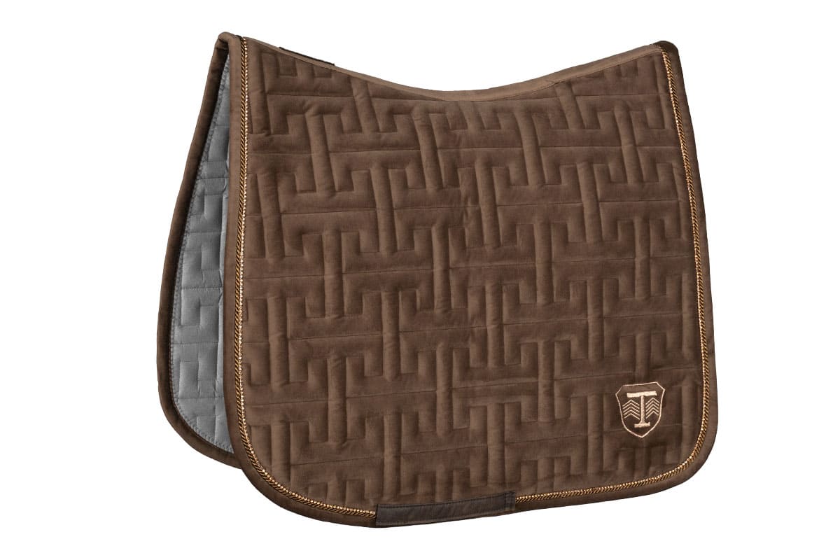 An original, proprietary quilting referring to the logo that signifies the Torpol brand. Finished with velvet piping, decorated with a brown cord, rhinestones and the Torpol crest on both sides. Perfectly fits the horse’s back.